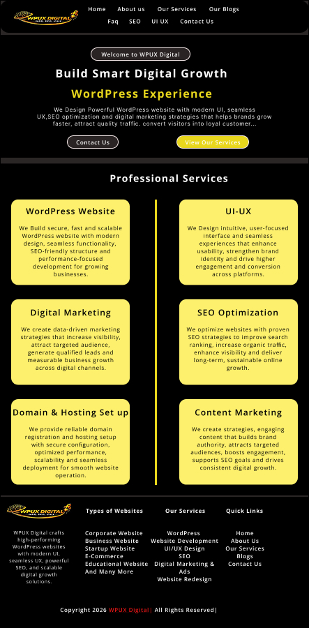WPUX Digital crafts high-performing Wordpress Websites with modern UI, seamless UX, powerful SEO, and scalable digital growth solutions.